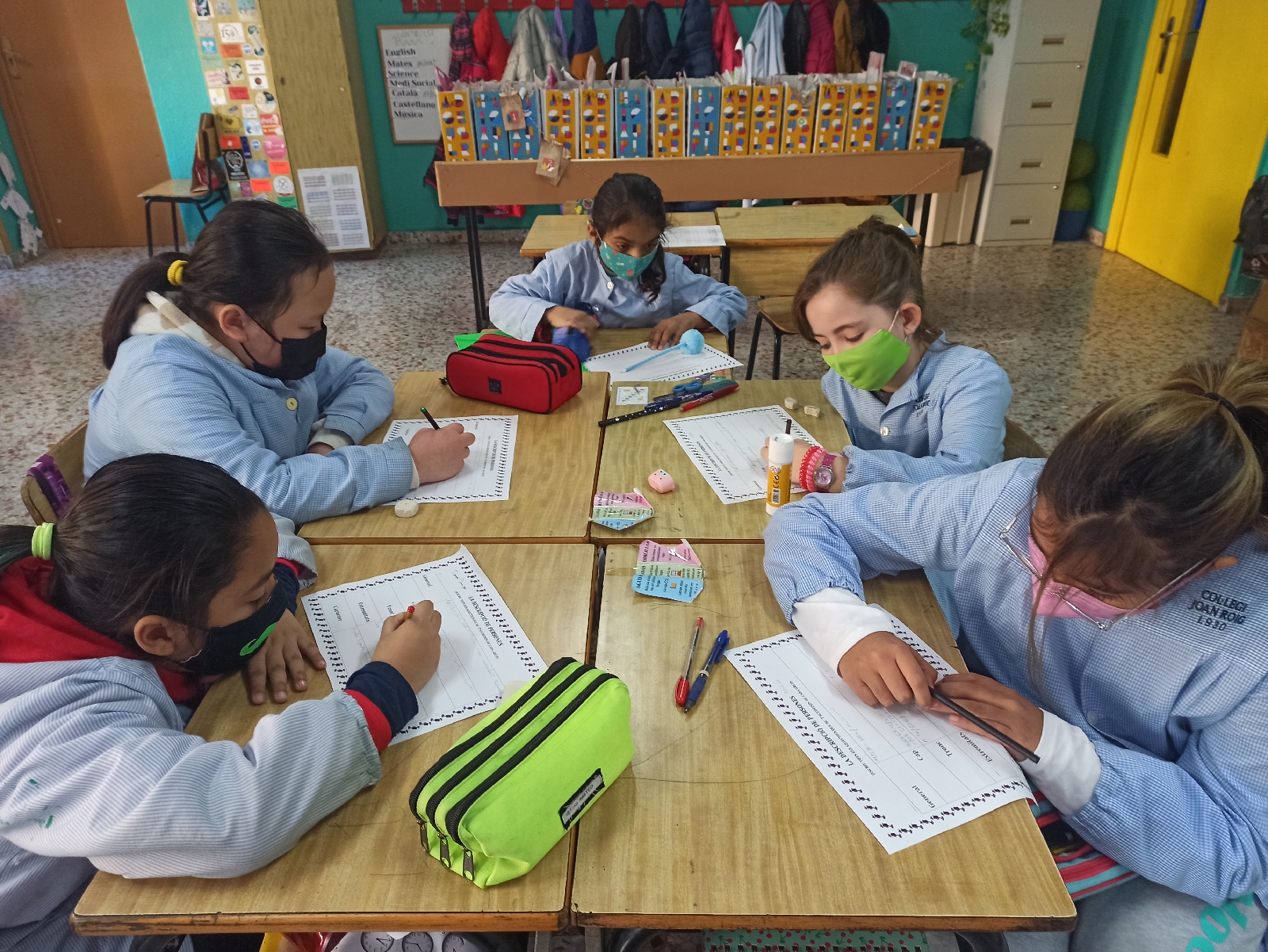 Avui hem treballat les descripcions de persones. Primer hem fet un llistat d'adjectius que després hem necessitat per completar uns mots encreuats. Hem completat descripcions de personatges com en Goku, la Marinette, en Doraemon i la senyu Judit.